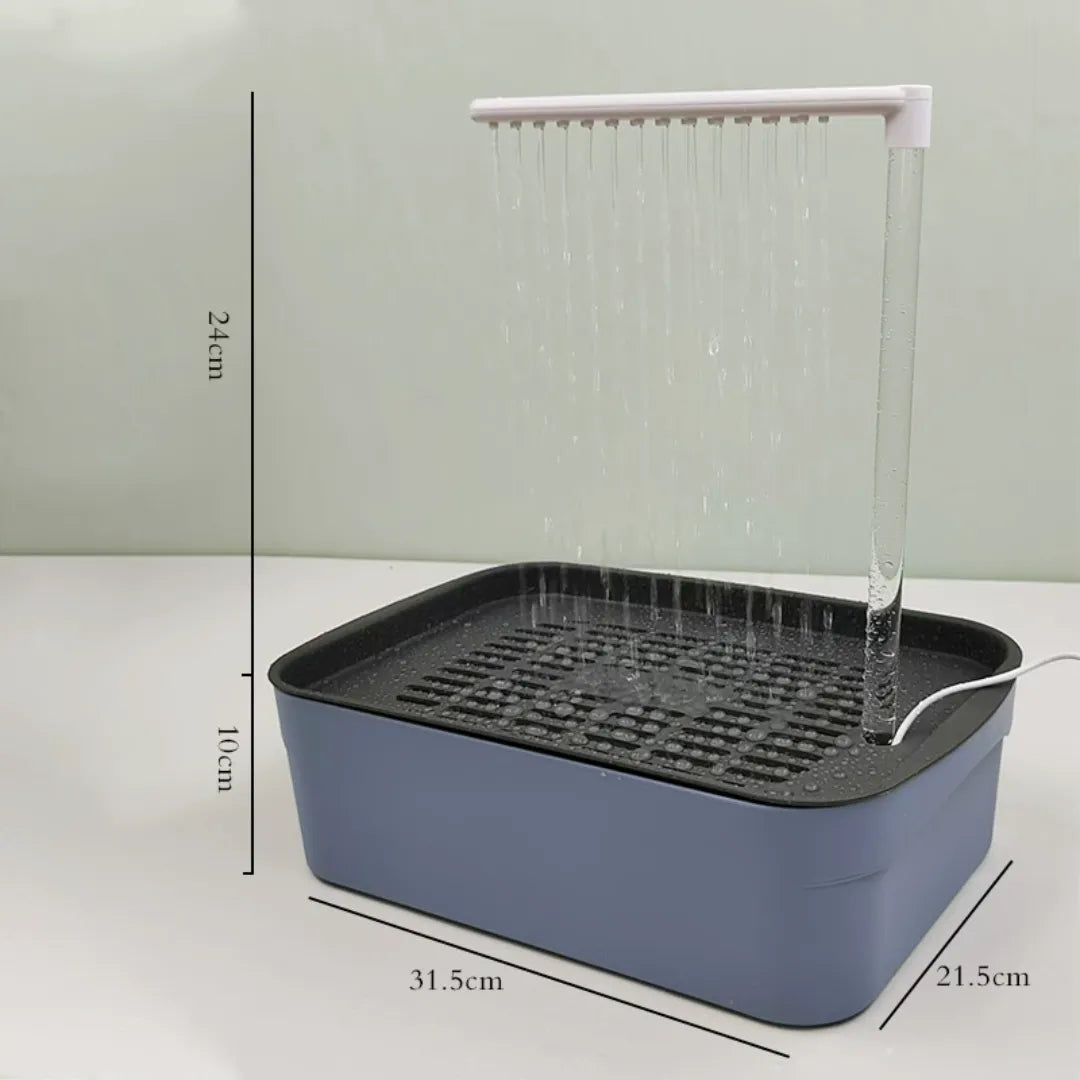Esta bañera incorpora un sistema de ducha automática que simula la lluvia suave que encontrarían en la naturaleza.