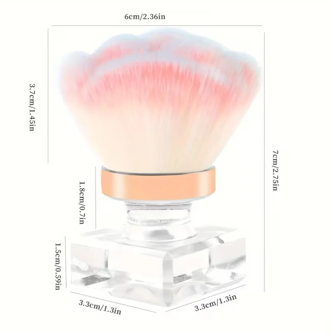 Una sola brocha que funciona para: Polvo suelto y compacto, Rubor e iluminador, Sellar maquillaje, Retirar polvo de limado en manicure y acrílico