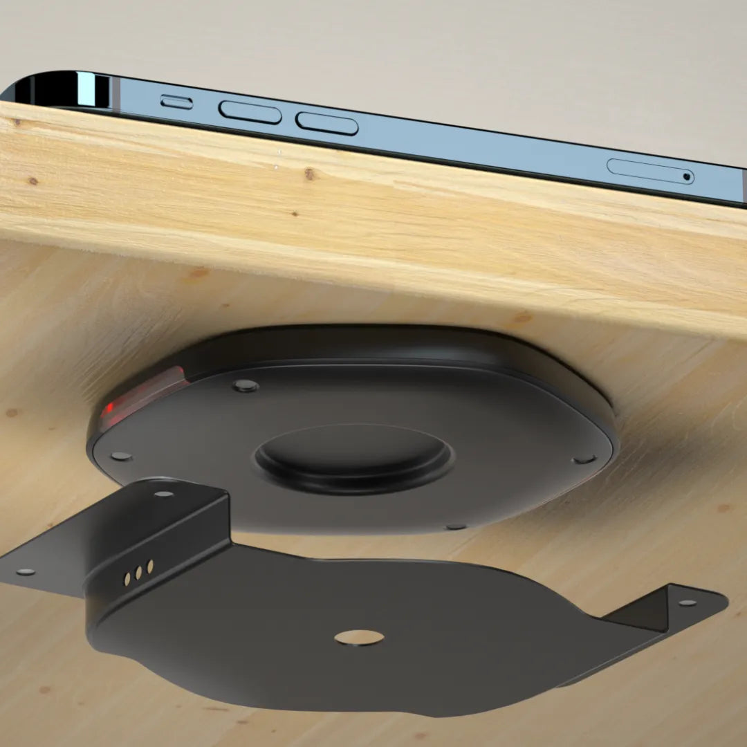 Cables cruzados, cargadores visibles y mesas desordenadas arruinan cualquier espacio. Este sistema se instala debajo del escritorio y convierte la superficie en una zona de carga invisible. Solo apoyas el celular sobre la mesa y comienza a cargar. Nadie ve nada. Todo se mantiene elegante.