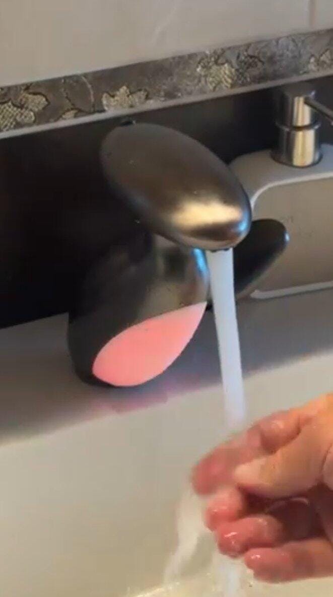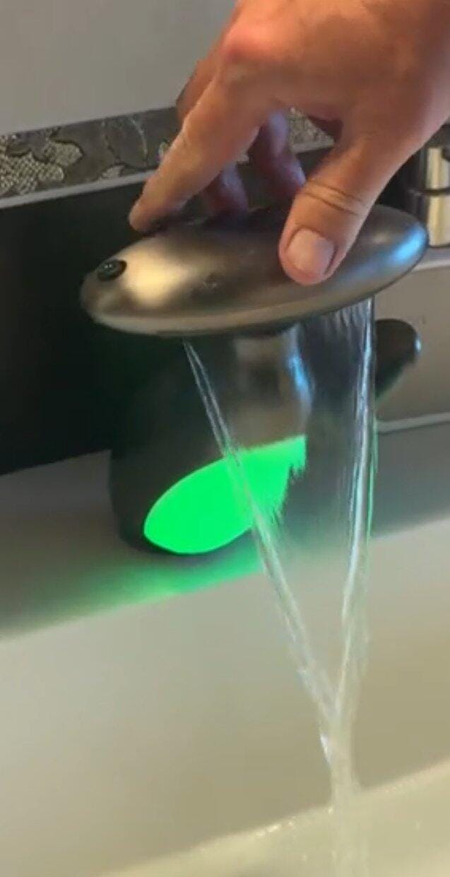 Me encanta que cambie de color. Es muy práctico para saber si está caliente el agua antes.