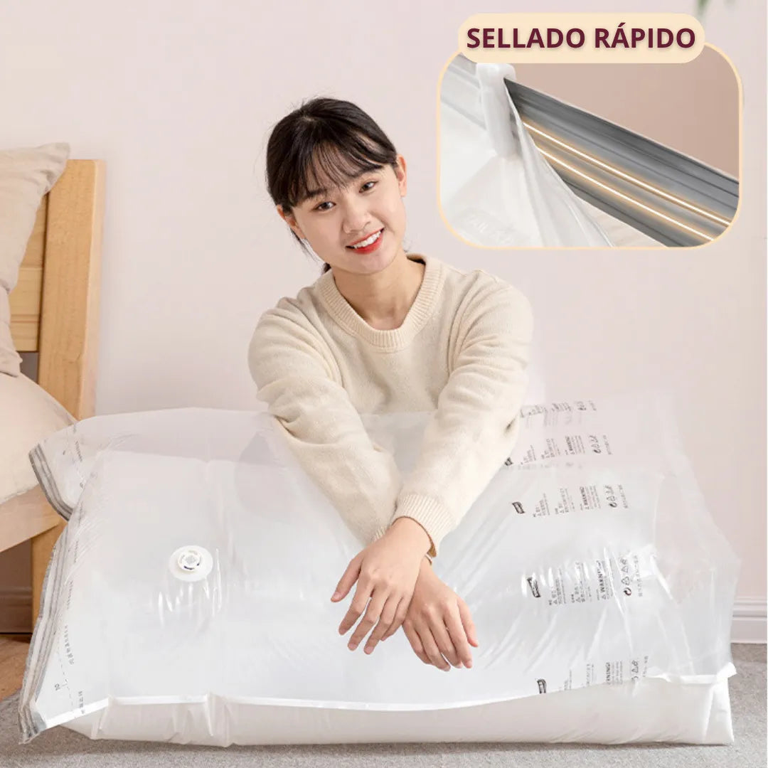 Transforma tu armario y libera hasta 75% más espacio con nuestro kit completo de bolsas de sellado al vacío. Perfecto para ropa de temporada, edredones, almohadas y todo lo que necesites guardar de forma compacta y organizada. Tu hogar nunca había estado tan ordenado.